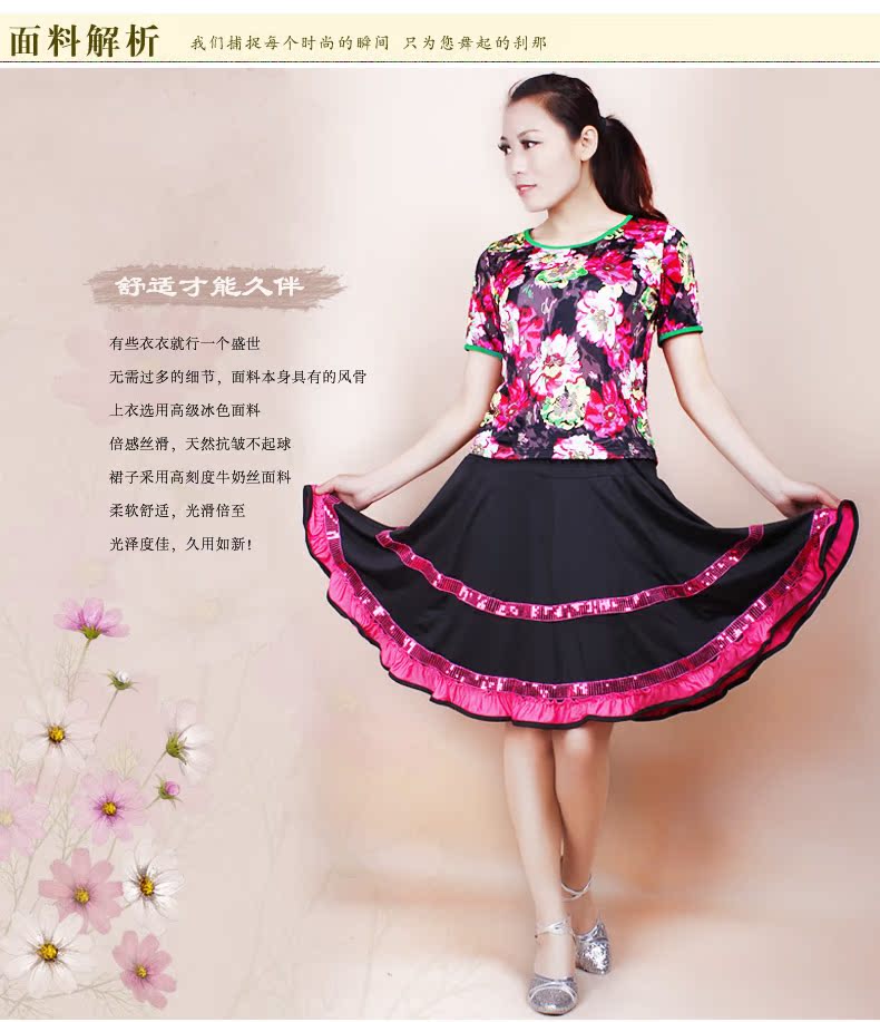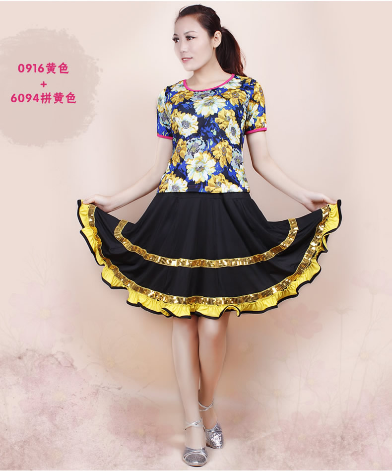 0916黃色+6094拼玫紅M芳之舞廣場舞服套裝新款裙套裝舞蹈服短袖上衣夏款拉丁舞表演出服