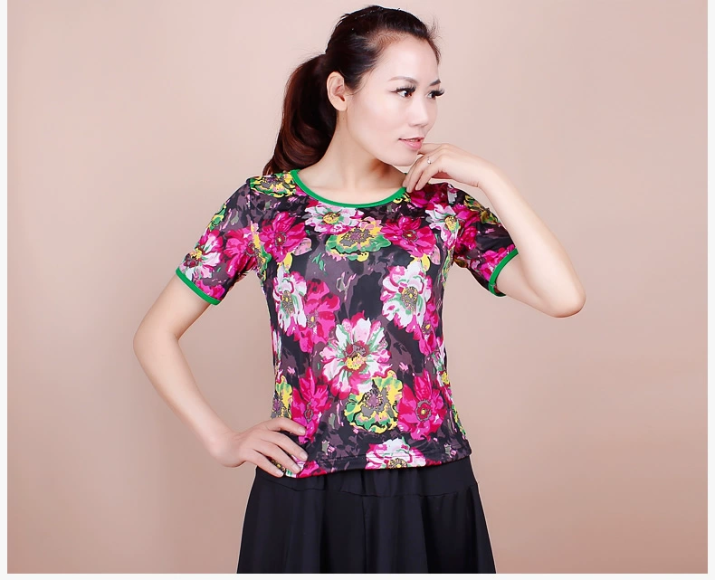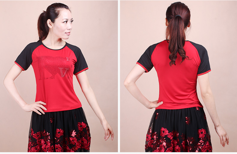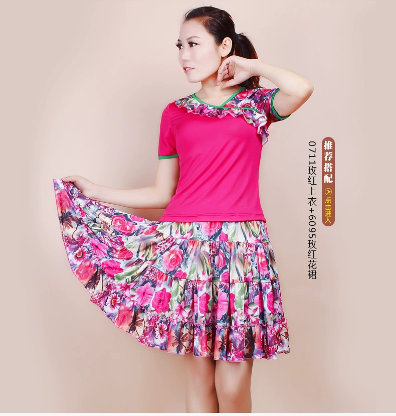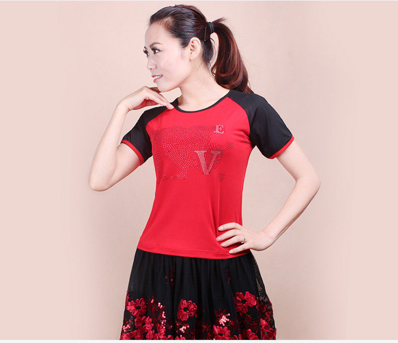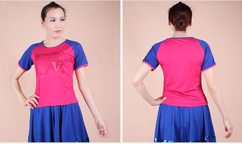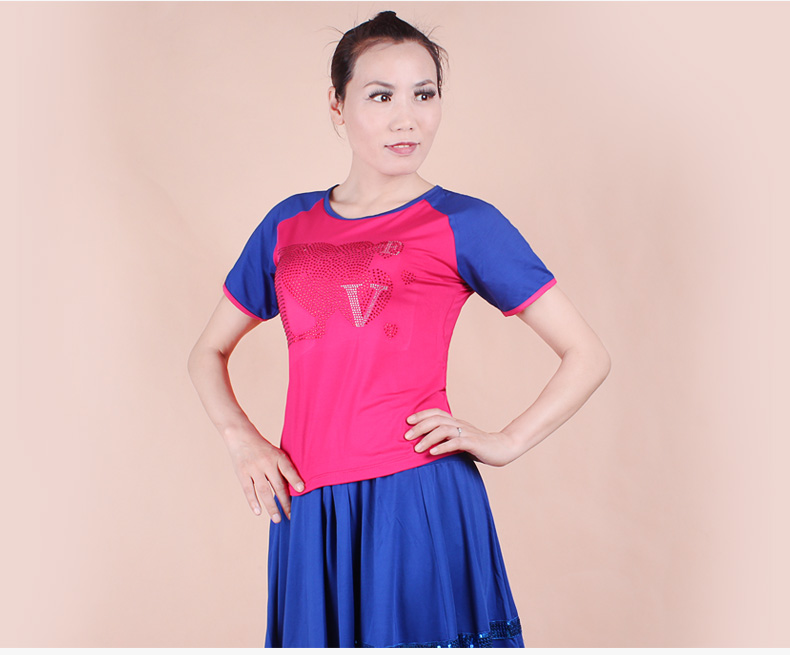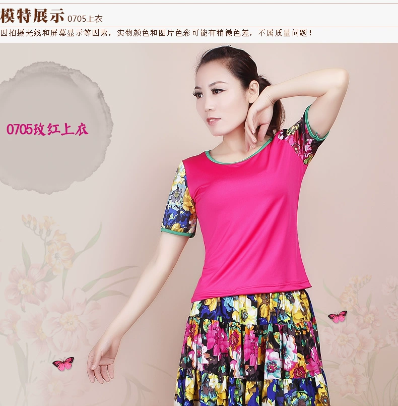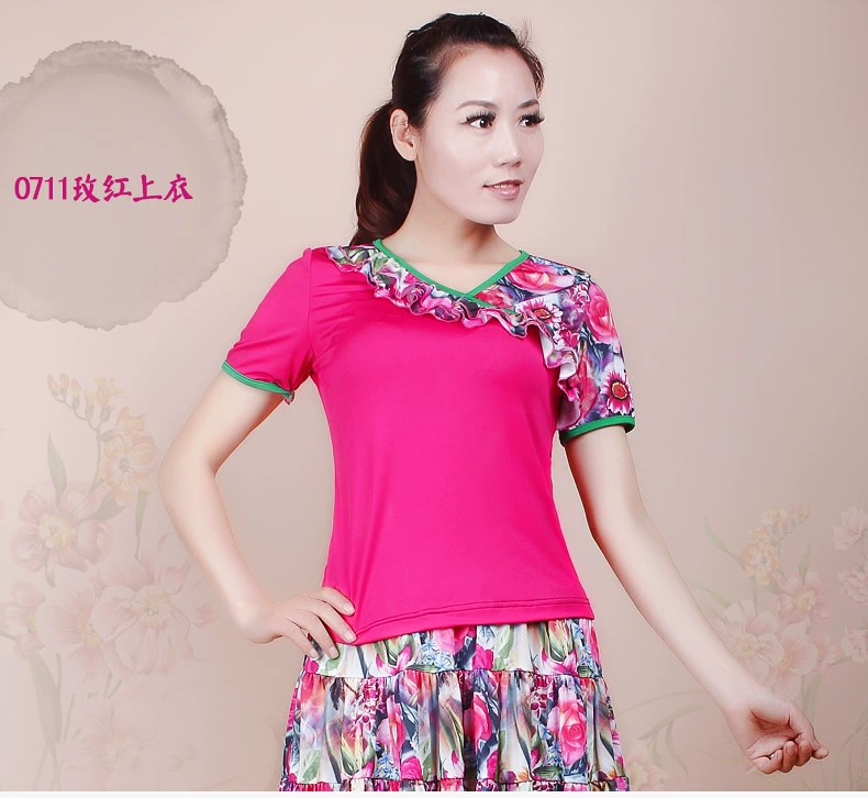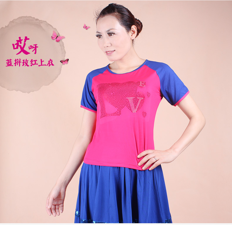 0705玫紅上衣M芳之舞 春夏新款廣場舞服裝短袖上衣 楊藝紫蝶廣場舞服裝 舞蹈服