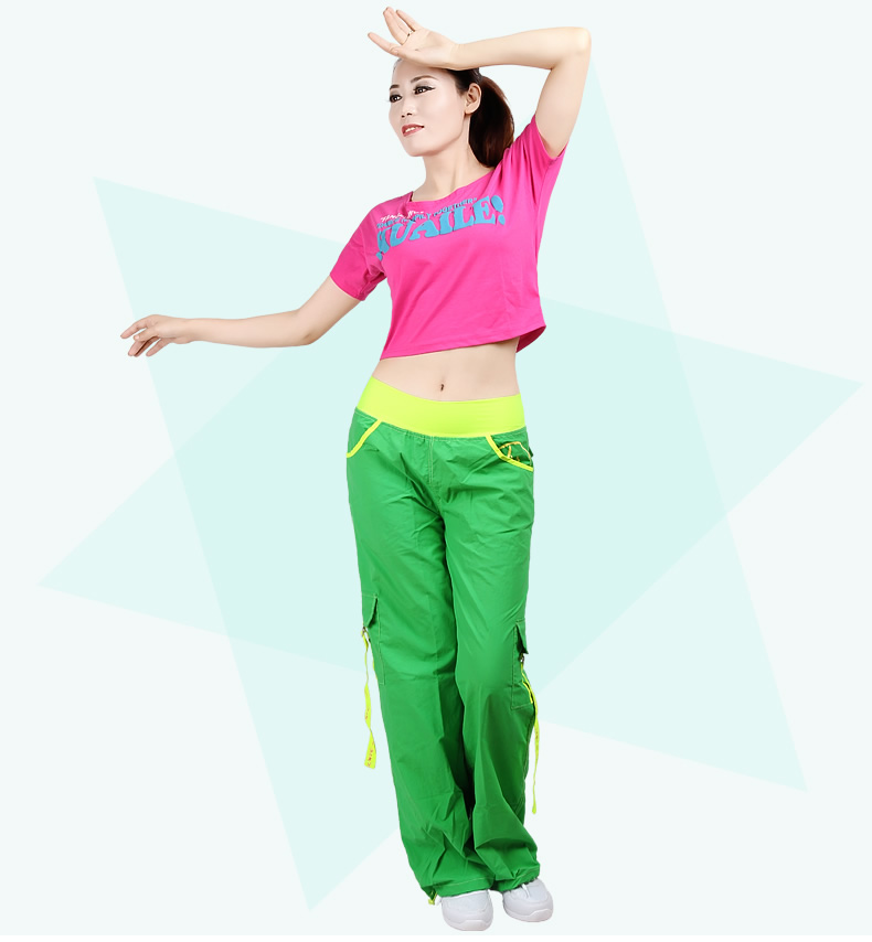 018露臍上衣+K063玫紅褲M芳之舞廣場舞服裝夏季套裝新款上衣露臍短袖長褲運動跳舞蹈服