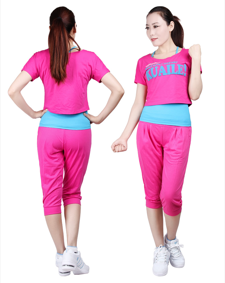 018三件套長褲套裝M芳之舞春夏季新款三件套運動套裝 廣場舞服裝短袖套裝 舞蹈服