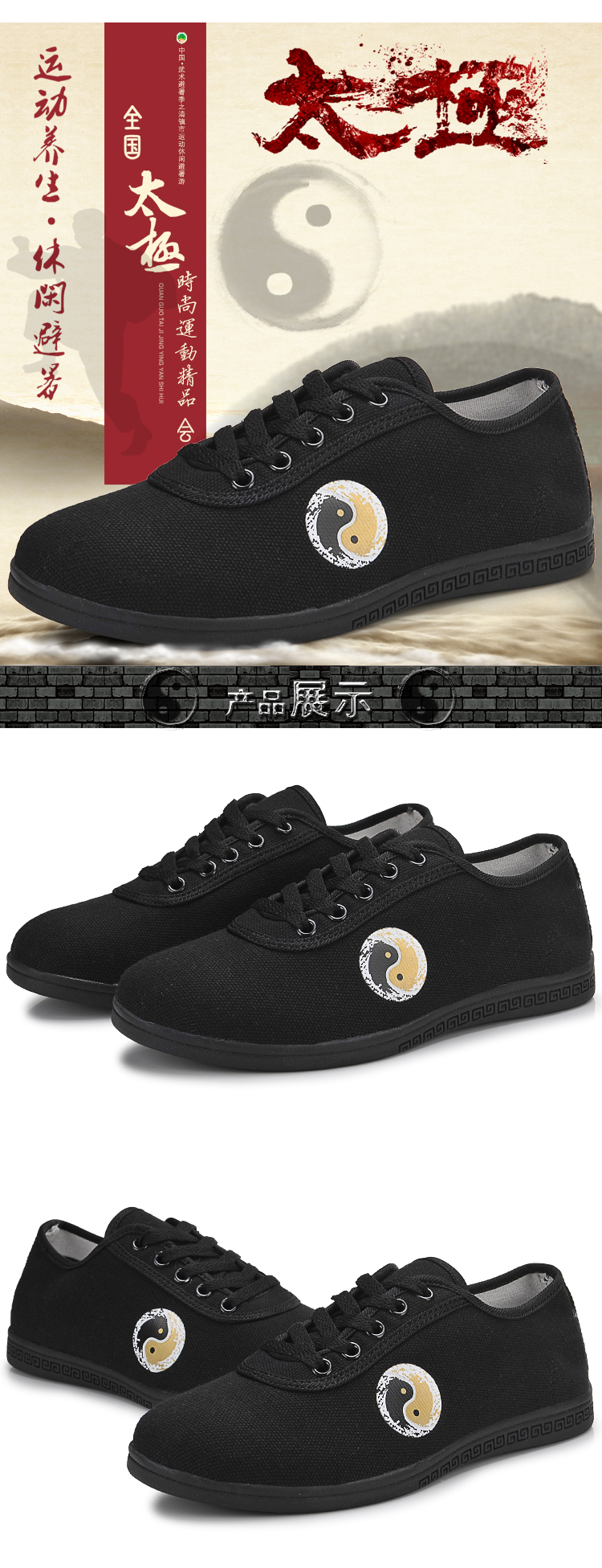 黑色35太極拳鞋橡膠底帆布鞋武術練功鞋男女晨練表演訓練健身太極運動鞋