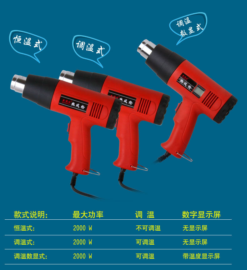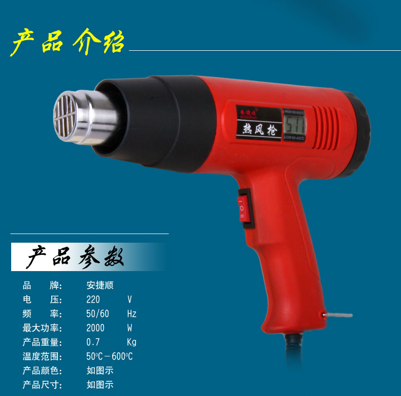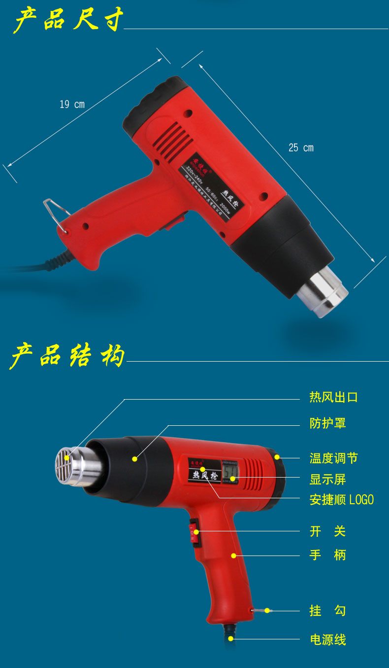 調溫2000w+紙盒安捷順工業級2000W熱風槍 高檔吹風槍 塑料焊槍 貼膜烤槍