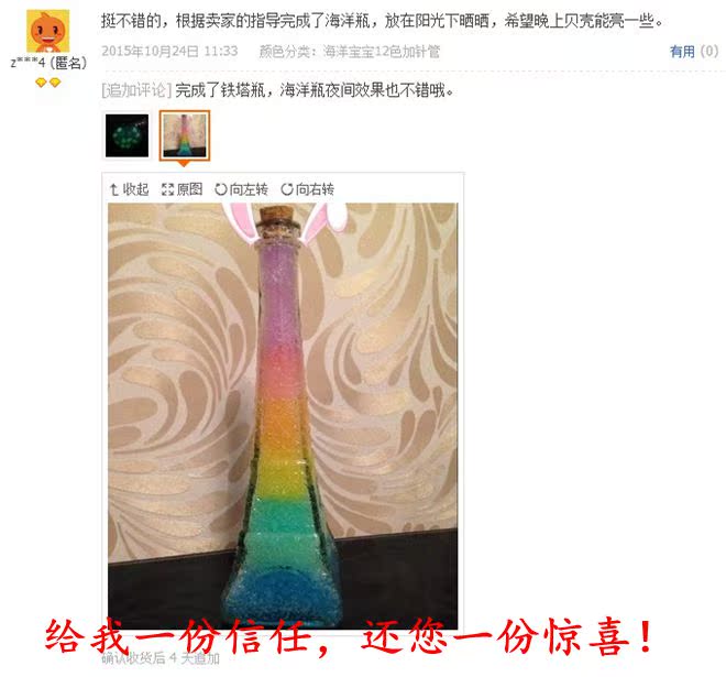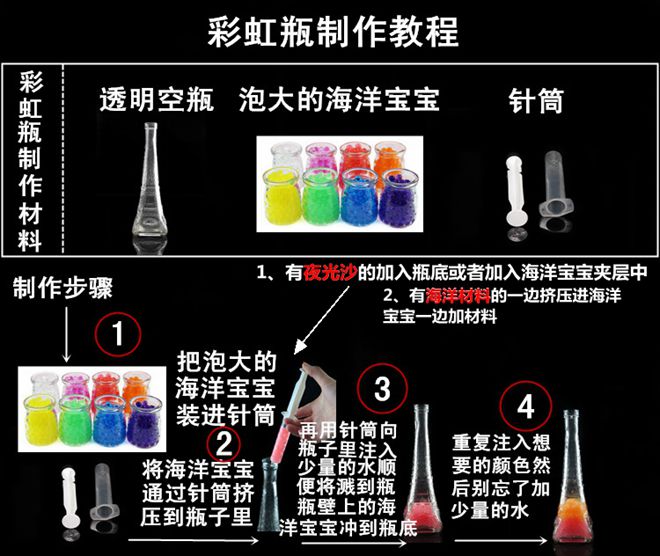 4.加適量夜光沙可制作可夜光的彩虹瓶