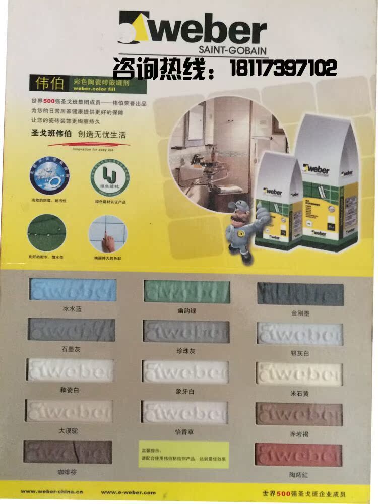 釉瓷白2kg偉伯彩色瓷磚嵌縫劑 馬賽克填縫劑 美縫劑 韋伯填縫劑勾縫劑防霉