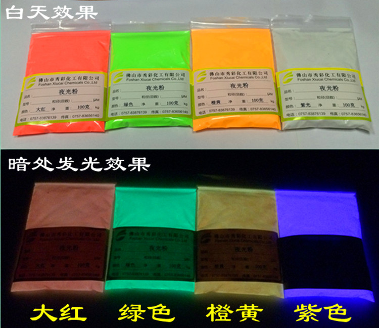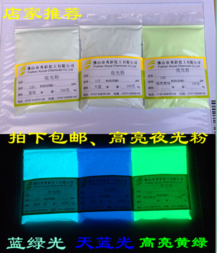 ★夜光粉系列 ------ 發 光 顏 色—--- 彩色粉末:藍色、大紅、粉紅、橙色、橙黃、黃色、綠色、紫色 包 裝 與 重 量---- 粉末是違禁品之一所以粉末都是統一自封袋安全包裝10克 如何讓夜光粉發光--- 吸收各種可見光源10-20分鐘即可發光6小時左右且是無數次循環使用 特 別 注 意---- 夜光粉是屬于環保蓄光型夜光粉所以請在使用前吸光 使用方法---- 本品可以和各種透明的介質混合在一起使用,如光油,透明指甲油,透明油墨,透明樹脂等,混合比例為3:7,如30克的夜光粉和70克的透明光油混合使用,因為夜光粉的比重大,下沉的速度快,所以一定要隨攪隨涂。如大面積使用,可用噴槍噴涂,切忌光油不能和水混合! 噴涂方法:將夜光粉直接混入光油,之后用筷子類的東西攪拌均勻再噴涂,比例按目測,以達到自己意即可。要注意的是,夜光粉沉淀速度飛快,必須要快速并且將噴口調到最大,否則造成塞筆,清理起來非常麻煩。 筆涂方法:將夜光粉混合光油,然后用面相筆手涂上色 502涂裝法:涂上502然后灑粉,重復幾層,一般3層就行了,而且只要涂得薄是不需要怕粗糙的,因為越厚實亮度就越亮,直到最后用筆刀削切平整,再在上面霧噴一層光油。 產品介紹---- 夜光粉是高效蓄光型自發光材料,通過吸收各種可見光,實現自動發光功能。在日光或燈光下吸光10-30分鐘,即可于夜暗處發光8小時以上,并可無限制循環使用。該產品不含任何放射性素,可做一種添加劑,均勻分布在各種介質中,如涂料、油墨、塑料、印花漿、陶瓷、玻璃燈,實現介質的自發光功能,并可顯示出本顏料所具有的明亮色彩,呈現良好的低度應急照明、指示、標識、裝飾美化效果。