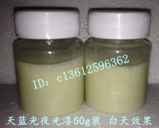 | 本公司大部分商品6一10天到貨。不接急單。急單的客戶請不要下單。感謝諒解與合作! 產品:夜光漆 顏色:黃綠光、藍綠光、天藍光推薦使用,漆本身為半透明狀有點乳白色的感覺不能說完全透明介意者慎拍 彩色:黃色、綠色、藍色、粉紅、大紅、橙紅漆本身有顏色 特點:吸光能見光源就可在暗處發光吸光飽和狀態大概可以發光5-6小時左右注意前面幾個小時為高亮期過后就慢慢變弱并不是說6小時一直這么亮反復使用吸光一次發光一次壽命為15年 開蓋即用:此款夜光漆為油性夜光漆所以會有股油漆味涂刷好之后完全干了就不會有任何味道