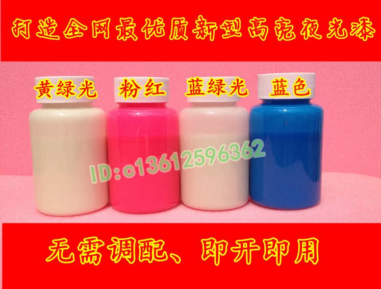 品名:夜光漆無需調配、開蓋即用 包裝:300克裝 顏色:黃綠光、藍綠光、天藍光、紫光液體本身為乳白色接近透明 黃色 、藍色、綠色、粉紅、橙黃、橙紅、大紅 夜光漆特性 1、本產品屬油性夜光涂料。 2、為長效型夜光涂料,發光原理為吸收可見光后,轉換成光能儲存,然后在黑暗中自行發光,可無限次循環。 3、發光時間長,6-8小時注意并不是說6小時一直那么亮前面2小時比較亮慢慢變弱。 4、開蓋后可直接使用,由于夜光粉比重大,使用前請充分攪拌均勻。 5、增強物品能見度,娛樂氣氛。 夜光漆使用方法: 一、涂刷用小面積: A、對小面積的物體涂漆建議使用涂刷方式 B、筆涂方法:將夜光漆攪拌均勻,然后用面相筆涂上色。 二、噴涂用大面積: 1、對漆面平整之需求大面積之被覆勿建議使用噴涂方式以空氣噴槍噴霧為佳。 2、使用空氣槍噴涂時,視噴霧黏度需求酌量添加稀釋劑添加量應以≦5﹪為宜,以避免降低發光效果。 3、為使夜光漆蓄光效果更佳,建議于噴涂前務必噴涂壓克力系列白色平光底漆為底層。 4、待噴涂底漆完全干燥后,再噴涂夜光漆噴涂時請距離被披覆物表面15-25公分為宜,進行薄薄一層之噴霧約待5-10分鐘左右再噴涂第二道。 5、每道噴涂間時間以5-10分鐘為宜,至少應噴涂三道為最低基準,視噴涂后之均勻情況;可再加噴第四道或更多,隨噴漆膜厚度之增厚其蓄光能力更強即夜間亮度更佳。 6、夜光漆指觸干燥時間約15-20分鐘,噴涂完成后可視需求再度噴上透明漆,以使夜光漆表面更加亮麗使用時間更加持久。 |
