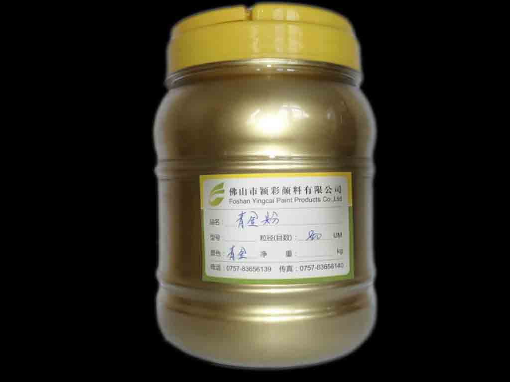 銅金粉說明佛山穎彩金屬粉是一種浮型片狀顏料,由一定比例的銅、鋅和鋁合金,經熔煉、球磨、分級到所需要的規格和效果而成。銅金粉的色相可分為黃金粉、青金粉、紅金粉、紫銅粉、銅金粉等。我司供應的銅金粉又稱金粉,規格、品類齊全,色澤純正亮麗,金屬感特強。有國產銅金粉,銅金粉,德國愛卡銅金粉。型號及規格粒徑um水面遮蓋率c㎡/g特性與應用范圍200目銅金粉35 2000∼2500光亮度金屬顏料,適用于墻紙涂料,卷煙包裝及各類器具的噴烤漆240目銅金粉28 3000∼3500光亮度金屬粉顏料,適用于織物印金、墻紙涂料、刷漆400目銅金粉25 2800光亮度金屬粉顏料,適用于墻紙涂料,刷漆和并入塑料之中800目銅金粉20 4000特光亮金屬粉顏料,適用于紡織物印刷用噴霧膠漆、塑料、墻紙“點尖”涂料、水性或非水性紙涂1000目銅金粉15 5600特別精細光亮顏料,主要用于制造光亮度高的噴霧膠漆、木質材料、絲網印刷油墨用橡皮凸版油墨1200目銅金粉9 6500特精細顏料,油墨塑膠印刷紙張印刷油墨1500目銅金粉5 7800粉狀,使用性能特佳、光澤度高,穩定性好,可以用來制造罐裝、膠印油墨1800目銅金粉3 8000特細粉狀,使用性能特佳、光澤度高,穩定性好,可以用來制造成罐裝、膠印油墨銅金粉廣泛應用于:涂料、油墨、塑膠、硅膠、印刷、印花、皮革、工藝品、圣誕禮品、噴涂、玩具、印染等行業。在使用產品時,切記攪拌機轉速不宜過快,以免破銅金粉金屬片而影響產品質量。