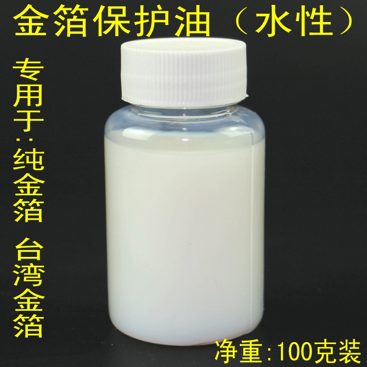 金箔保護油水性乳白色液體 干了之后透明一、特性及用途金箔保護膠為單組份合成樹脂,專用于箔、純金箔表面的保護,讓金箔更加鮮艷有光澤度。它適用于任何膠粘劑所貼金箔,具有附著力好,透明度高等特性。二、使用方法1.直接噴涂、刷涂均可,濃度高需要調節時,可加少許水稀釋。2.施膠后室溫條件下自干或加溫烘干均可,溶劑揮發完全即達到質量要求。三、注意事項1.金屬箔表面應清潔,無油脂、灰塵。2.在環境濕度過大的情況下使用時,本品成膜揮發極易吸收水份,影響透明度,建議施膠后產即用熱風吹干。3.本品應避免與水接觸。4.保質期一年,長期貯存如無析出物可繼續使用。