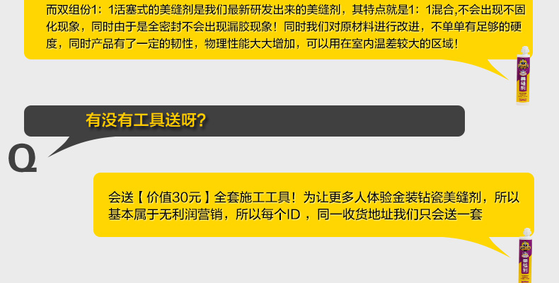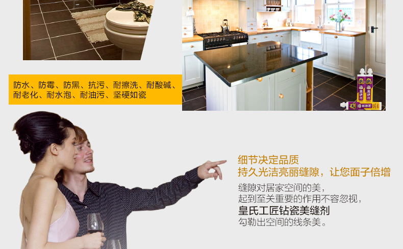 金裝鉆瓷【瓷白色】虧本體驗78皇氏工匠雙組份鉆瓷美縫劑 瓷磚填縫劑 勾縫劑陶瓷膠白鎦金色