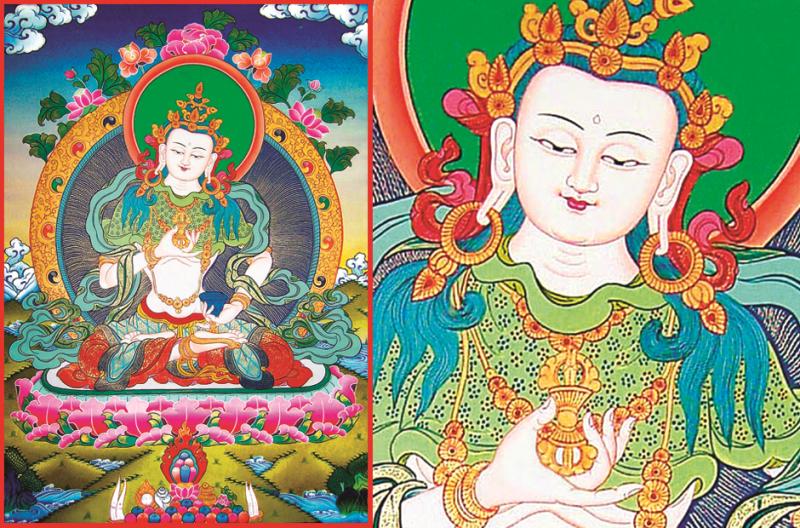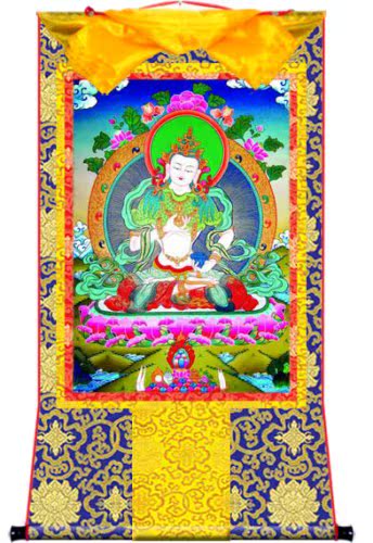 因是佛教圣相,所以我們選用的裝裱材料均是現在能有的最好的裝裱材料,正面選用定制的高檔棉織金絲錦緞很多仿制的是化纖材料,織繡藏傳佛教的富貴蓮花圖案,背面使用加厚仿真絲黃色綢緞布,手工精細裝裱而成,帶掛軸,照面,可直接懸掛到墻上。
