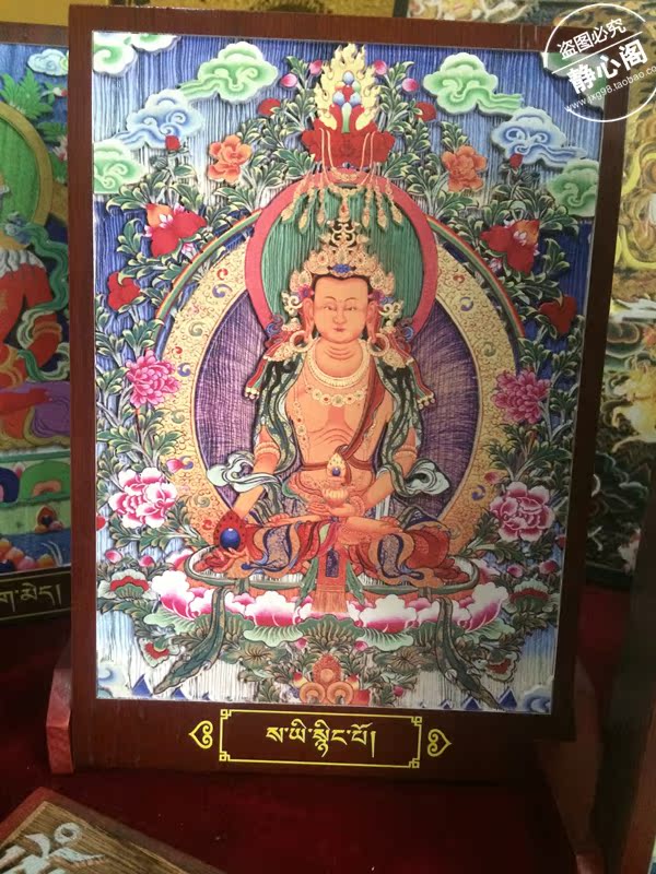 藏傳佛教木雕木制彩繪佛像擺件唐卡長壽佛佛教開光天然橡木擺件
