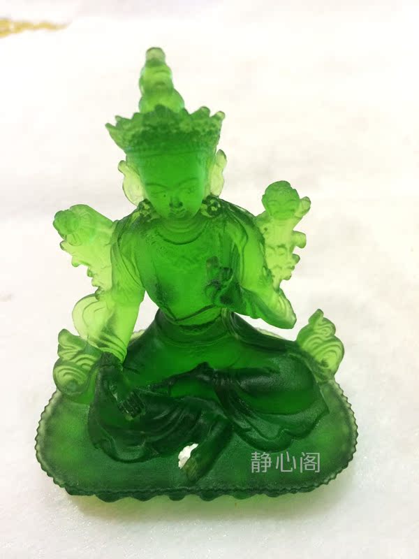 藏傳佛教 琉璃佛像綠度母佛像 隨身佛汽車佛堂吉祥平安擺件高9cm
