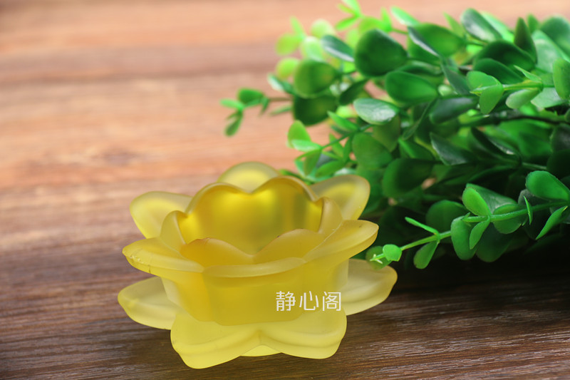 酥油七彩蓮花燈座蓮花燈座酥油燈座琉璃磨砂佛具佛教用品黃色款