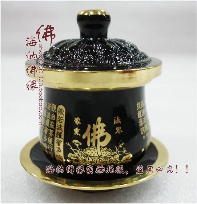 貢杯 凈水杯 供水杯 銅酒杯 茶杯 2.5寸烤黑凸字心經圣水杯純銅
