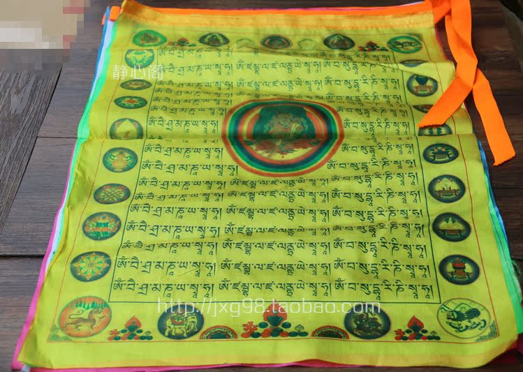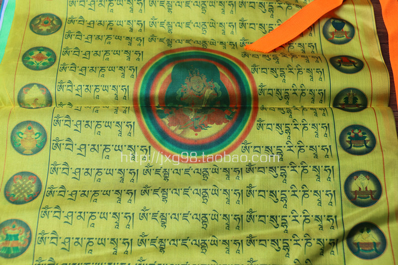 | 本公司大部分商品6一10天到貨。不接急單。急單的客戶請不要下單。感謝諒解與合作! 字跡:清晰 【材質】綢布 【單位】15/條串 【長度】3.5m/條 【單張】35cm*48cm 【張數】10張/條 【顏色】5色 【印刷】彩色印刷 【掛式】橫掛 【規格】每一條一種經文 【經文】黃財神心咒 經幡——改變福報命運最簡單的方法 ——擇自《經旗之功德》 溫馨提示同款經幡還有: 度母,財神,龍達,文殊,長壽佛,蓮師如意祈請文,觀音心咒六字大鳴咒