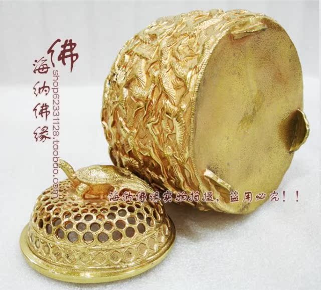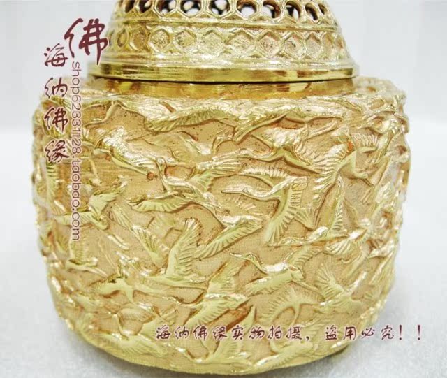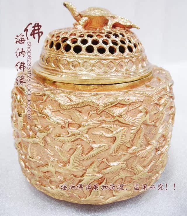 【產品名】 5寸千鶴檀香爐 【規格】 高約:14cm 長約:12cm 寬約:12cm 口徑約8.5CM 【材質】 純銅 【相關介紹】 千鶴爐--顧名思義,爐的四壁均為群鶴飛舞之狀,鶴本仙家之物,又是壽星守山之童,古有白蛇盜仙草之說,這也說明鶴所看守或賜於的均為延年益壽之物,故而,此爐能帶給您祥和,長壽的靈氣,如在爐中能燃上沉香檀木,那更能帶來寧氣安神之效。此爐乃經商之人,公司老總,年長之人最為實用。年長之人可為之添壽安神,公司老總,經商之人還可用此爐之祥和之氣化去生意場中廝殺的戾氣人祥百事成,家和萬事興。 |