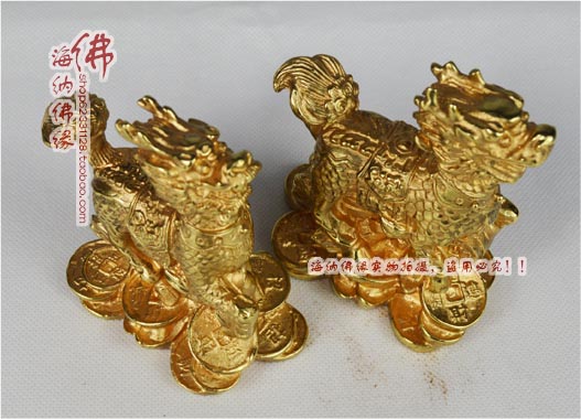 【產品名】 3寸火麒麟 【尺寸】 長約:9cm高約:8.5cm寬約:5cm 【單位】 對 【材質】 純銅 【相關介紹】 麒麟,為古代的仁獸,乃吉祥之寶,古以振官威所用,是權貴的象征,能消災解難,驅魔辟邪,催財生官。 此對麒麟腳踏麒麟和球,能夠為主護財,可作為招財化煞之用,頭向外財勢甚勁。 麒麟擺設之法:1對于財位擺放可催生財氣。2如放在驛馬方,麒麟則是催官達貴最強的吉物。3同時將一八卦凸鏡正對煞方擺放,可起到非常好的化煞效果。 |