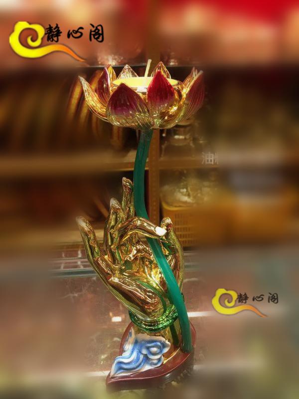 佛教用品燭臺樹脂彩繪 合金佛手蓮花佛堂裝飾玄關擺件燈座燭臺