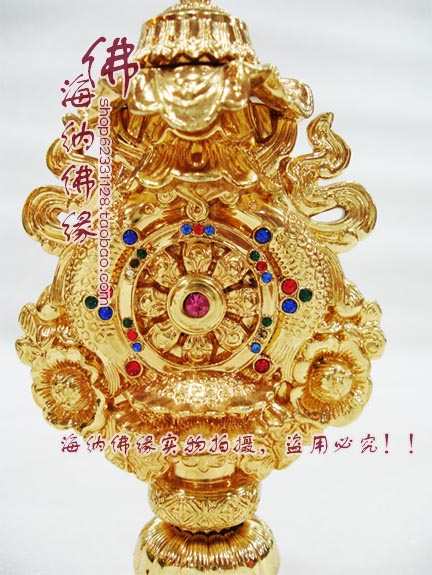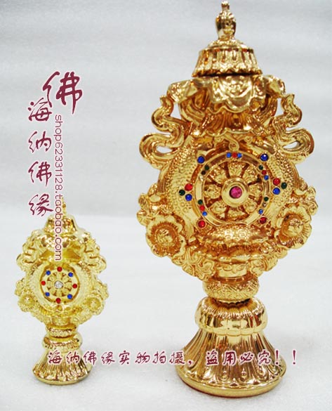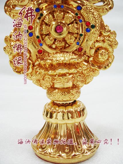 【產品名】 6.5寸新組合八吉祥亮金 【規格】 高約:16CM 【材質】 鋅合金外表鍍金 【相關介紹】 藏族傳統把寶傘、金魚、寶瓶、蓮花、金輪、勝利幢、海螺、吉祥結這八大象征看成佛陀身體的組成部分,合而成八瑞相。八瑞相可分別繪制,亦可成組繪制。八相合一時,常擺為瓶狀,即寶瓶不再形存于組件之中,而其他七件象征物糅合化一為寶瓶狀,象征吉祥清凈與不竭的財富。 擺放象征好運的八瑞相佛教圣物,示以敬迎宗教大德光臨佛門。此八吉祥供奉于佛堂,等同于供養了菩薩和護法等,功德無量。 注:此款有珠金可供選擇 |