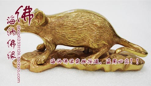 佛具 風水吉祥物 擺件 十二生肖銅鼠 招財富貴 7寸銅老鼠