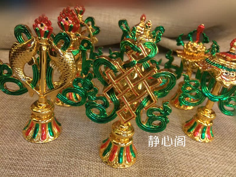 八吉祥擺件宗教用品純銅彩繪供品法器吉祥八寶擺件禮佛密宗10cm