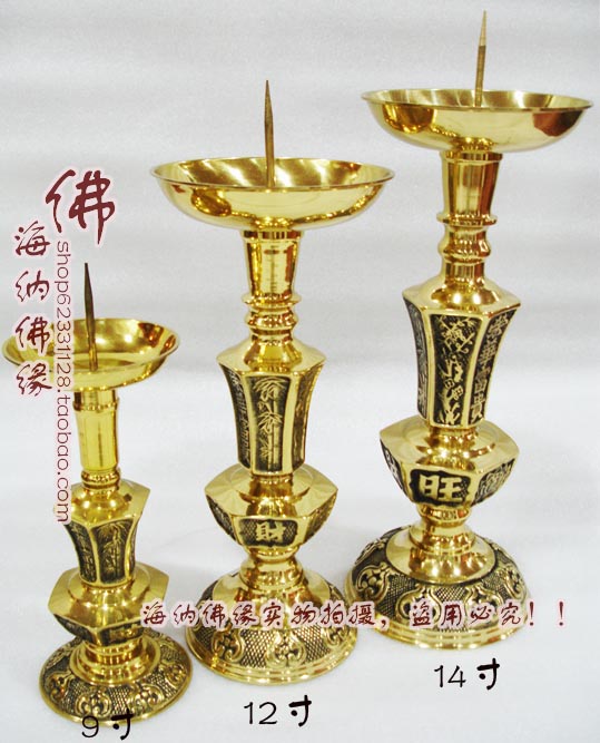 12英寸佛教用品 佛具純銅燭臺酥油蠟燭臺 銅供臺9寸-14寸旺財洋燭針燭臺