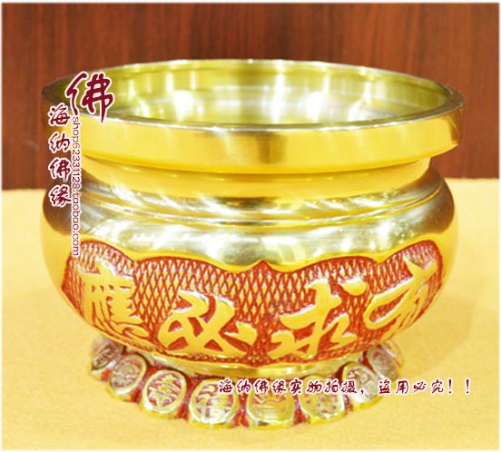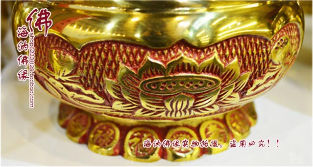 【產品名】 6寸有求必應蓮花爐 【規格】 外口徑約14.7CM,高約10.3CM 底直徑約11.8CM 【材質】 銅,內外拋光比較整齊內部也是經過拋光的,比較整齊,但偶爾還是會由個別沙眼或拋痕存在,放上香灰后不影響外觀使用!如介意者請慎拍!! 【相關介紹】 香爐,對華人來說,是最熟悉不過了。它不但是佛寺中的佛門法物,也是華人家庭中必備的供具。中華民族文化開發得很早,古時候的人,就常以焚香木熏居室以穢,所以古人讀書彈琴,喜歡先焚一爐香,可以凈雜念而使精神集中。重視欽水思源,慎終追遠是中國人的美德,所以自古以來,華人都拜天地神祗,祭祖先;上香表示敬意,是祭拜儀式中的一個主要項目,香爐就派上用場了。中國的香爐,就進入佛教的殿堂了。香爐的款式很多,有大、小、方、圓、長,短不一;質料也有銅、鐵、錫、石、陶瓷之別,以示身價有異;刻著不同的花紋和文字,表示用途各別不同。家庭中供有祖先牌位的,都在供桌上端端正正的放著一個香爐。如果佛教徒在家里供了佛象,也不忘放一個香爐;道教徒拜神明也用香爐。 注:此款有4寸\\5寸\\6寸\\7寸\\8寸\\9寸\\10寸\\12寸\\規格可供選擇。大小價格不同 |
