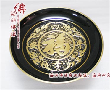 10英寸佛教用品 純銅供盤 果碟 水果盤 托盤 果碗 烤黑福字純銅果盤