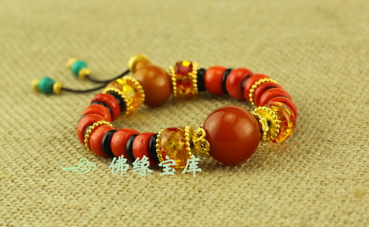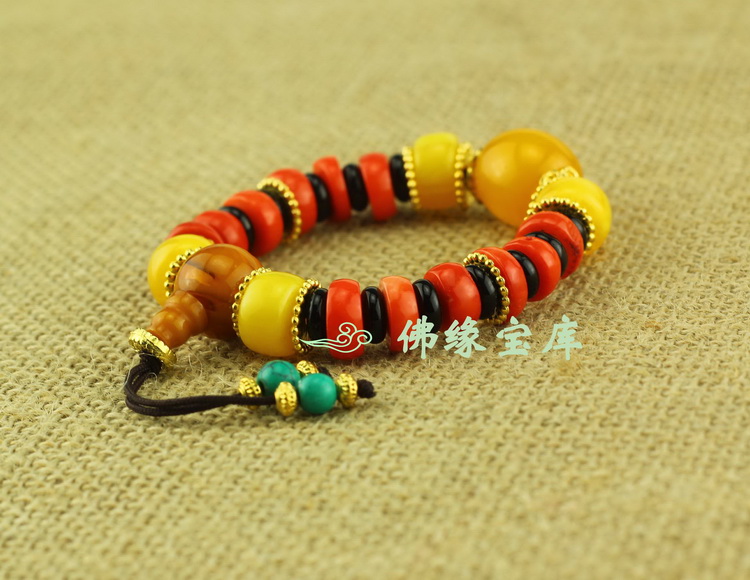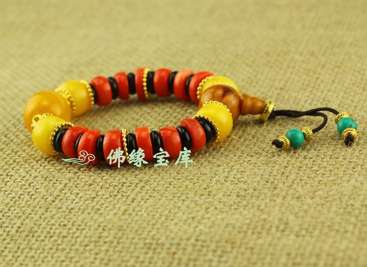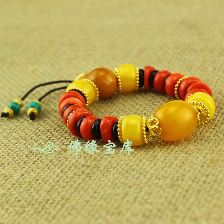 黃色隔珠開光珊瑚手串佛珠 珊瑚手珠蜜蠟 男女手串佛