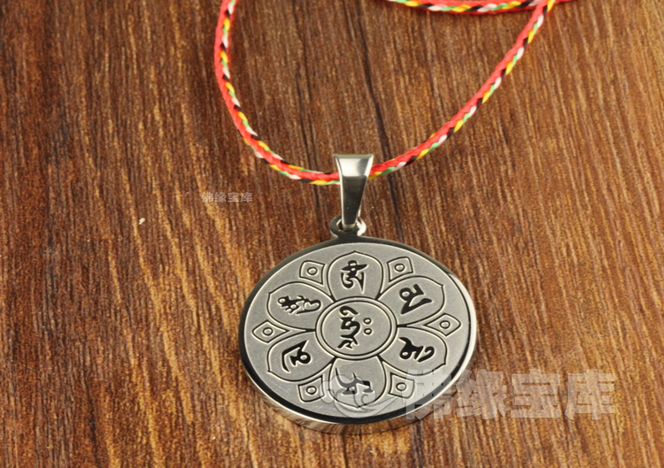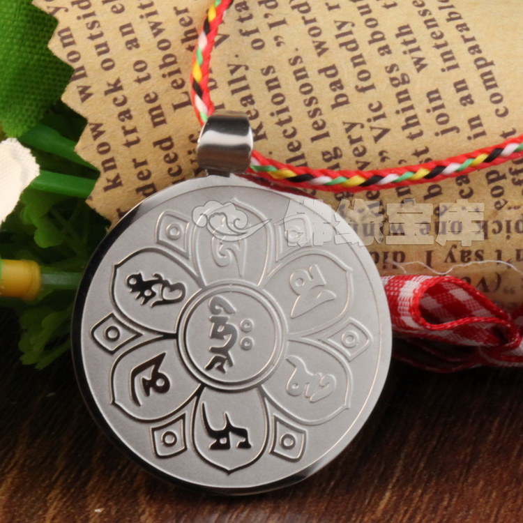 【商品名稱】開光鈦鋼銀色六字大明咒掛件