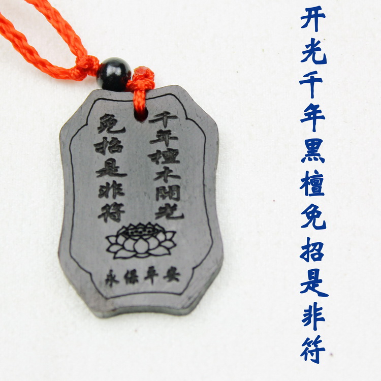 | 本公司大部分商品6一10天到貨。不接急單。急單的客戶請不要下單。感謝諒解與合作! 【商品名稱】天然黑檀免招是非符 【商品材質】天然黑檀木 【商品尺寸】約37mm*27mm*4mm 免招是非符又稱“專制小人符”,此符專防左鄰右舍、親戚朋友、同學同事、上級下級的口舌是非,免招官司。從而使擁有者工作、生活、學業、事業一順百順,萬事順意。