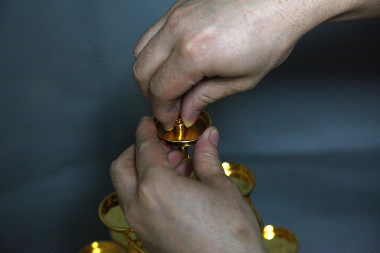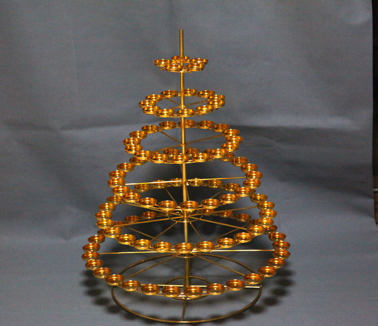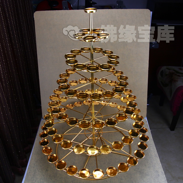 | 本公司大部分商品6一10天到貨。不接急單。急單的客戶請不要下單。感謝諒解與合作! 【名 稱】七層梅花粒酥油燈架可放108盞酥油蠟 【材質】金屬 【規格】高50厘米 直徑50厘米 【說明】所標為燈座,不包含酥油燈。約4公斤 此108鍍金燈架質量非常好,多遍鍍金工藝精美。 買就送點火器及不銹鋼鑷子! ,,,不,補相應。,,,,,不!