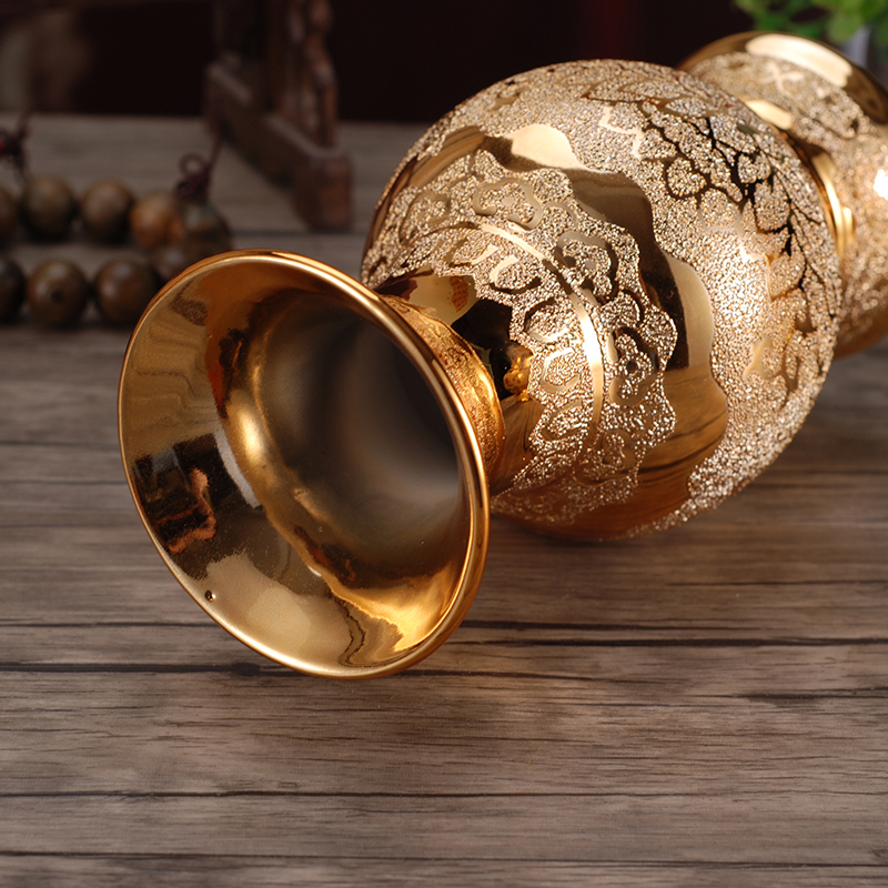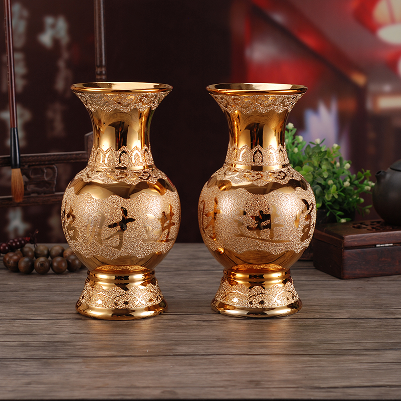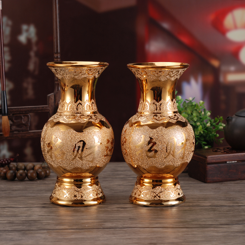 10寸蓮花花瓶佛教佛堂用品 陶瓷鍍金砂凈水瓶 供瓶 凈水花瓶蓮花花瓶 佛堂用品