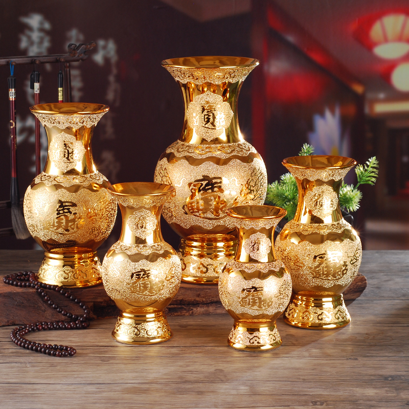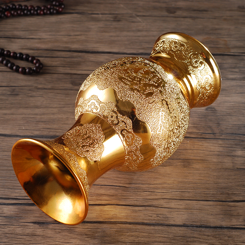 | 本公司大部分商品6一10天到貨。不接急單。急單的客戶請不要下單。感謝諒解與合作! 緣來佛具 【品名】 雙龍進寶花瓶 【材質】 陶瓷鍍金 【規格】 7寸 8寸 10寸 12寸 7寸口部直徑7.2cm;高約17.7cm; 整體直徑約9.5cm 8寸口部直徑8.8cm;高約20cm; 整體直徑約11.2cm 10寸口部直徑10.5cm;高約24.7; 整體直徑約13.5cm 12寸口部直徑12.7cm;高約29.5cm; 整體直徑約16cm
