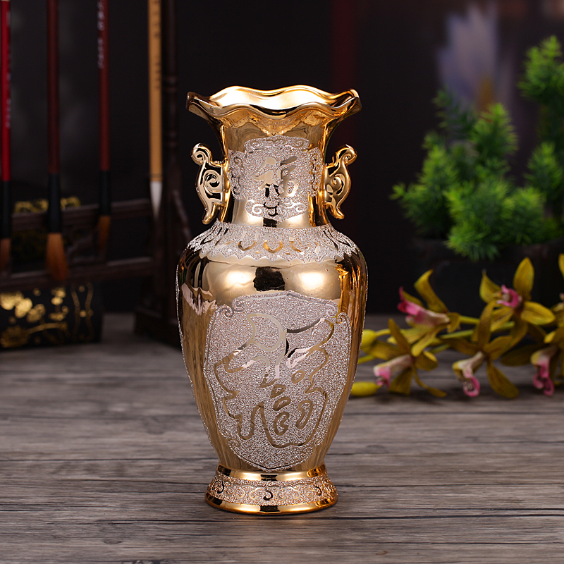 【品名】招財進寶福字雙耳花瓶 【材質】陶瓷 【規格】7寸、8寸、10寸、12寸 7寸口部直徑7cm;高約17cm;整體直徑約8.8cm 8寸口部直徑8.8cm;高約20.5cm;整體直徑約10.5cm 10寸口部直徑10.5cm;高約25.3;整體直徑約13cm 12寸口部直徑12.2cm;高約29.7cm;整體直徑約14cm