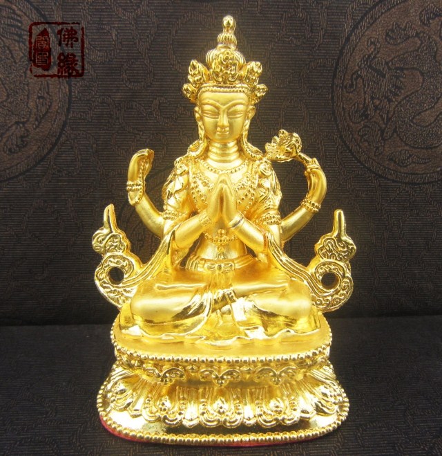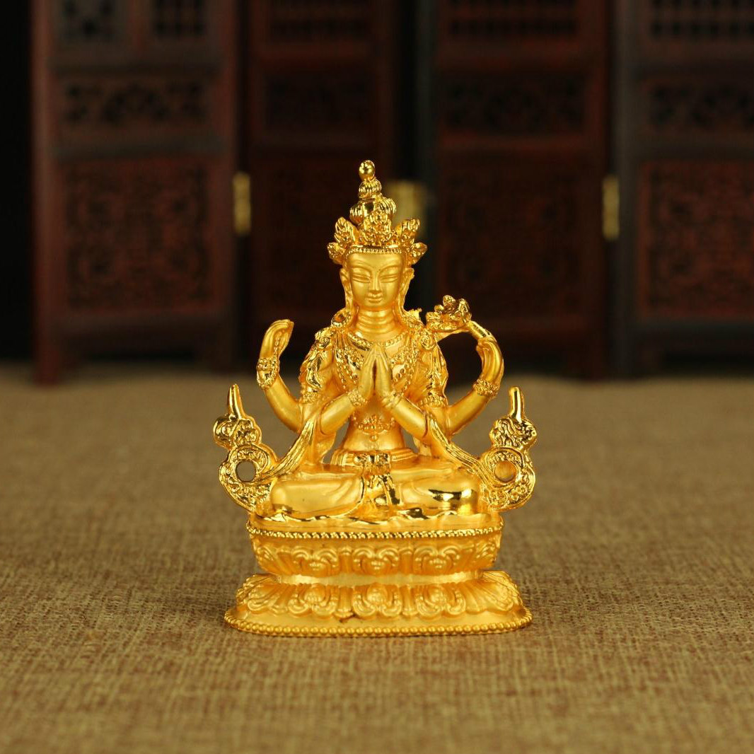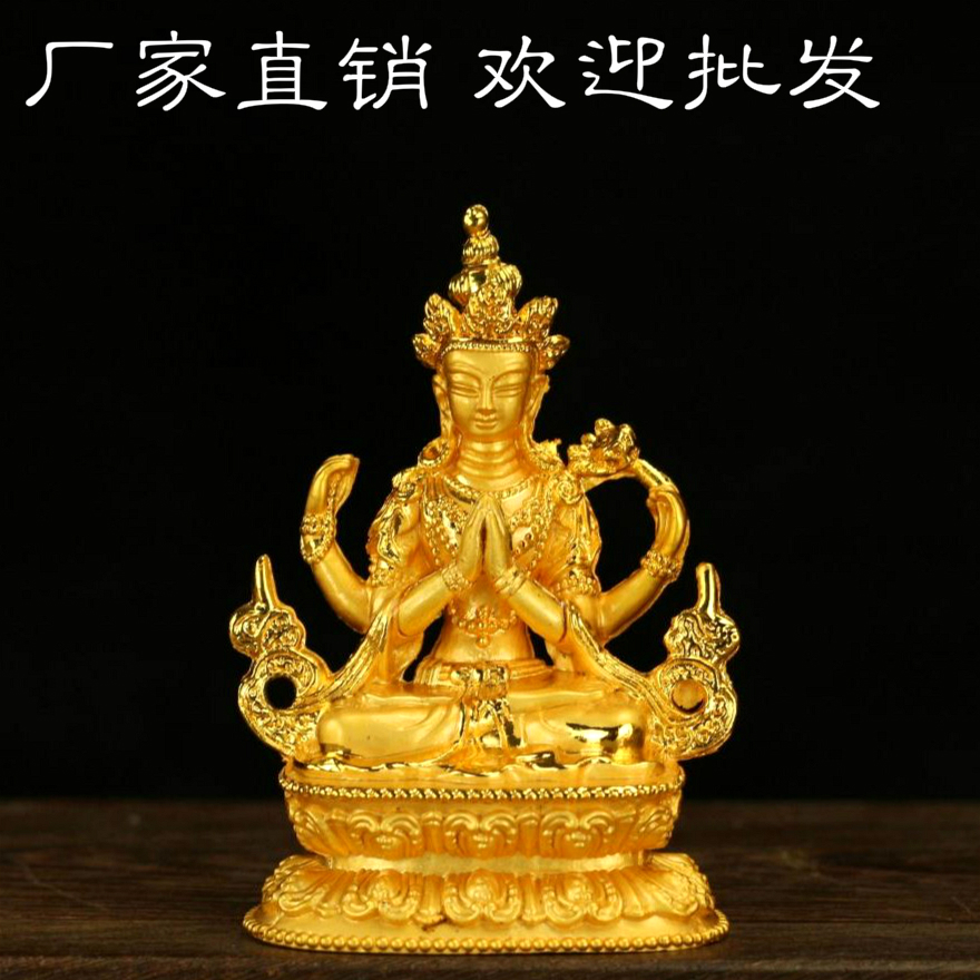 藏傳佛教用品 密宗佛像 銅質四臂觀音佛像擺件 可裝藏 特價結緣