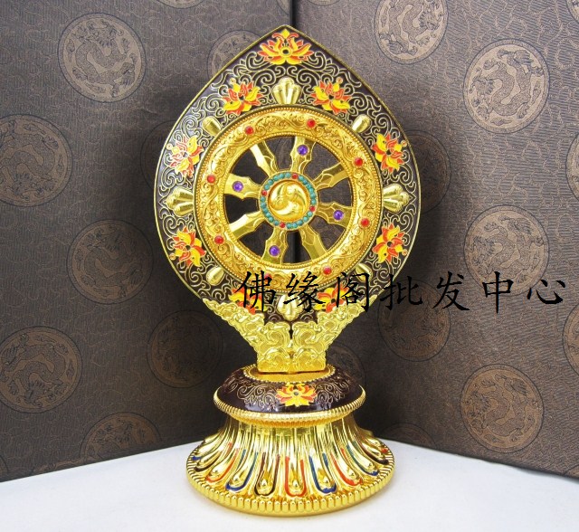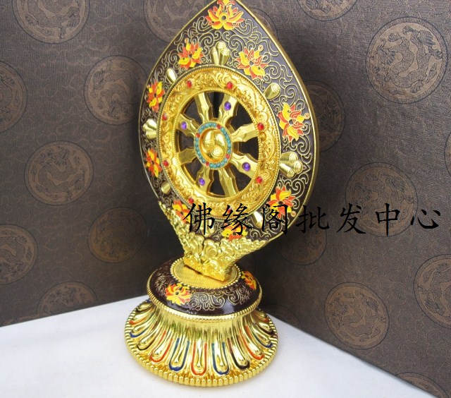 | 本公司大部分商品6一10天到貨。不接急單。急單的客戶請不要下單。感謝諒解與合作! 廠家直銷,特價結緣,歡迎批發 寶貝名稱:轉輪大法輪擺件正品 寶貝規格:高度21.5cm,法輪直徑12cm,底座直徑 直10cm,毛重約2kg 寶貝材質:銅合金 寶貝說明:精品琺瑯工藝 寶石鑲嵌 中間法輪可用手轉動 溫馨提示:任何工藝品都沒有完美的,追求完美者慎拍; 此款有大一個型號的款式,大號高25cm,法輪直徑15cm; 點擊進入大號鏈接:http://item.taobao.com/item.htm?spm=686.1000925.1000774.13.qZAHtz&id=36092989217 點擊進入小號鏈接:http://item.taobao.com/item.htm?spm=.1.3.4.Sryqy4&scm=1007.10152.2215.i36092957580&id=40489340088&pvid=02273ff2-67f1-4e5a-b7f2-624f0ba9788b
