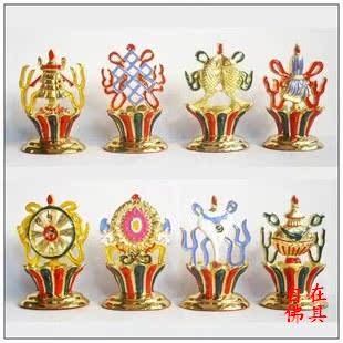 | 本公司大部分商品6一10天到貨。不接急單。急單的客戶請不要下單。感謝諒解與合作! 【產品名稱】八吉祥擺件 【產品規格】高6cm 【產品材質】銅 【產品工藝】鍍金 【產品產地】成都 【產品重量】約730g
