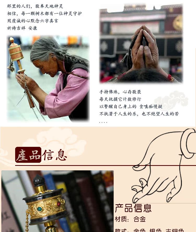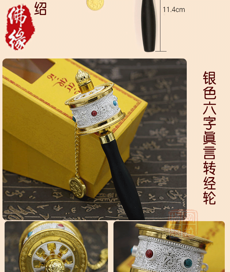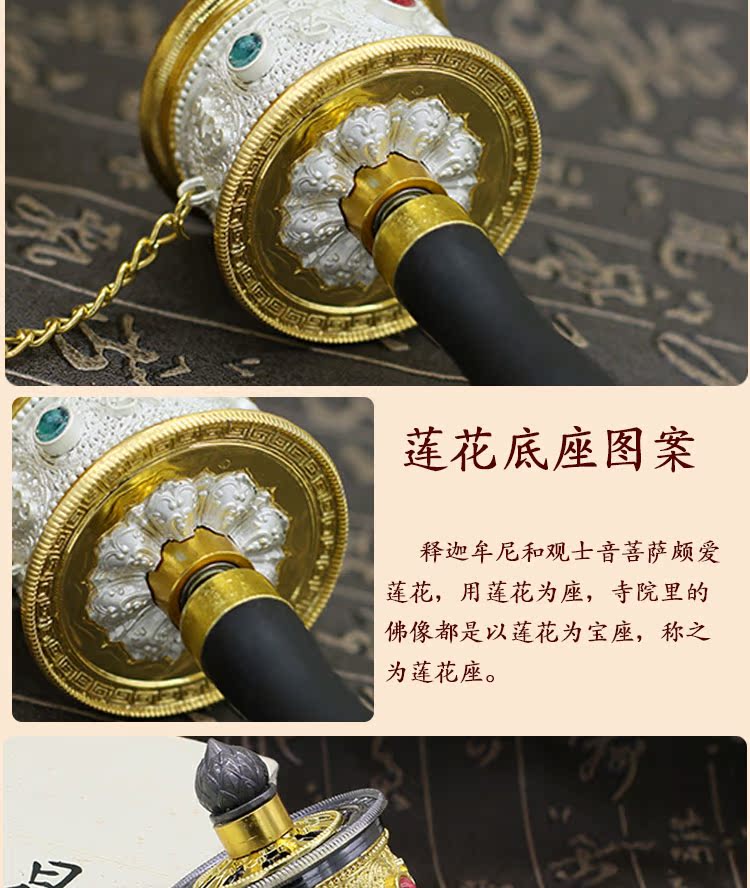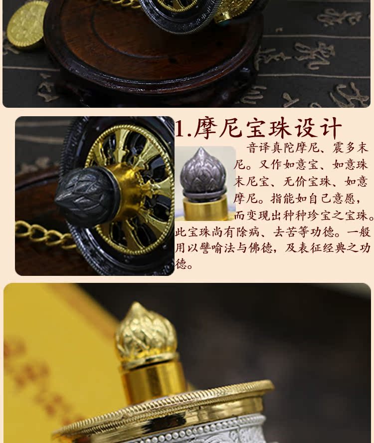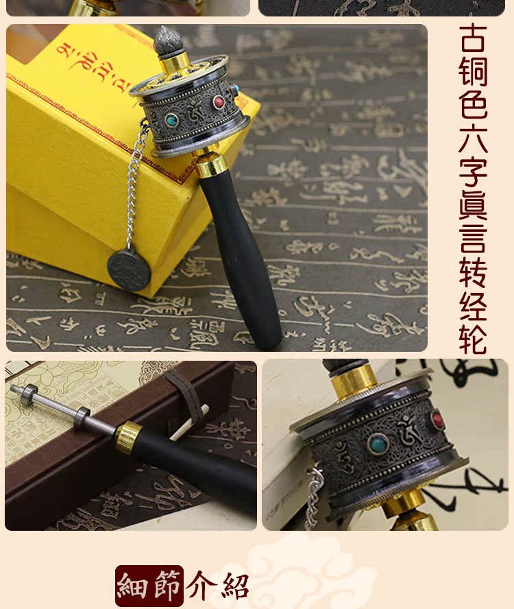銀款轉經筒佛教用品法器手搖轉經筒新款合金雙軸承超靜音六字真言轉經輪