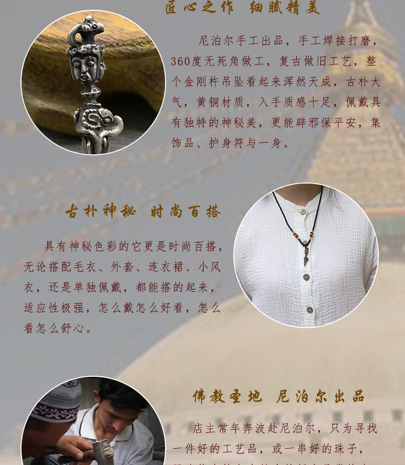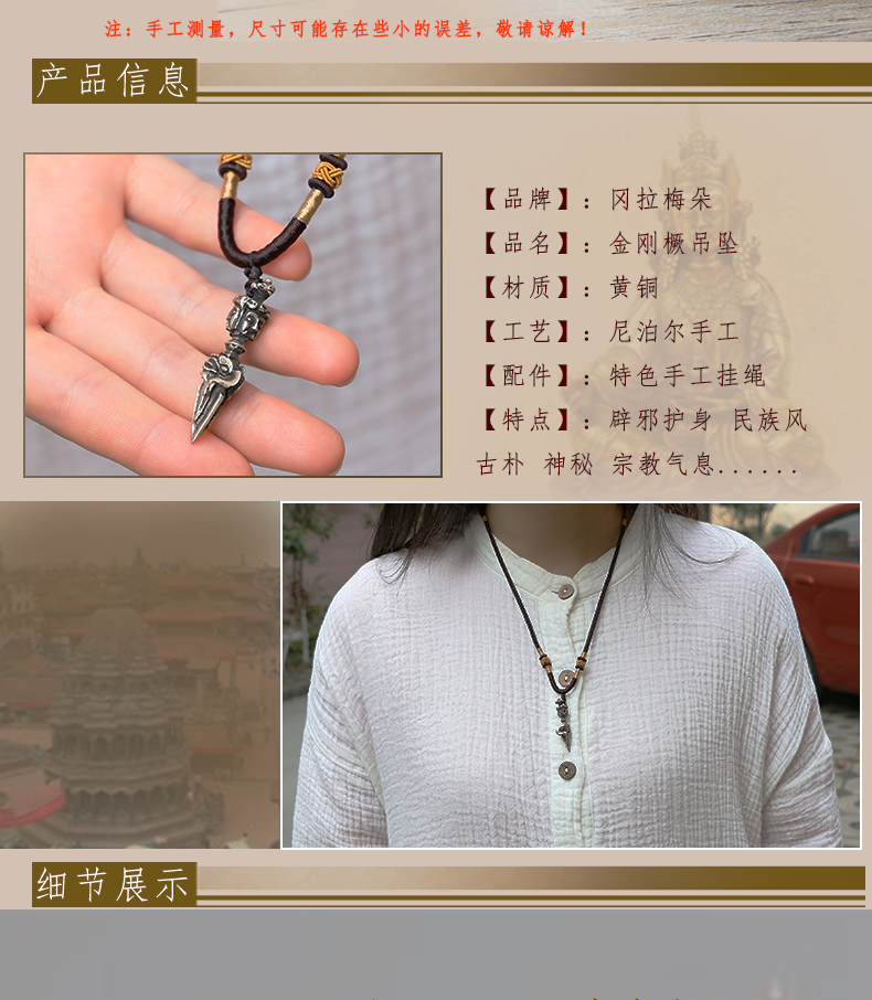 飾品尼泊爾手工金剛杵吊墜男馬頭明王降魔杵墜子星月菩提配飾