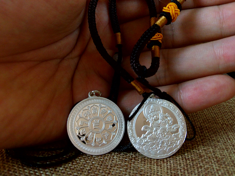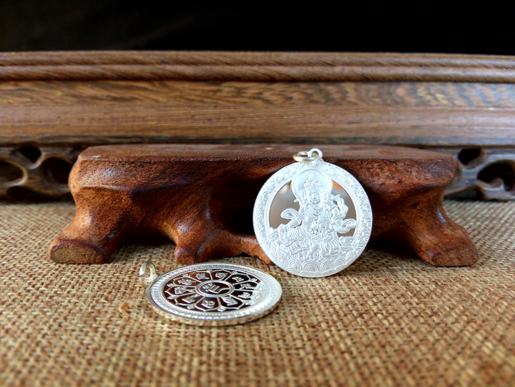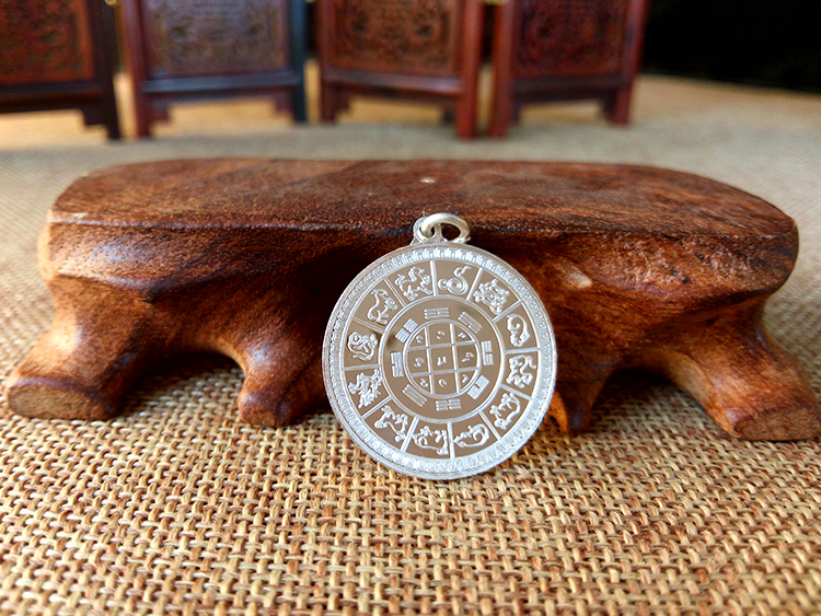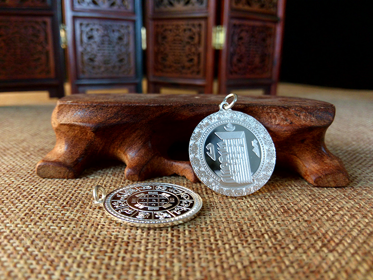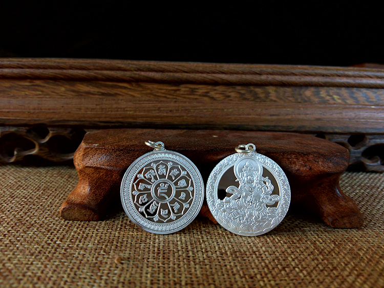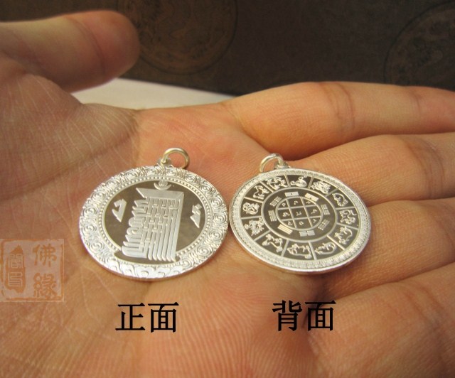 此款掛墜有十相自在九宮八卦款式和黃財神六字真言款式