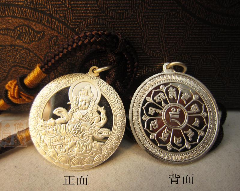 黃財神六字真言款式,一面是黃財神佛像,另外一面是財神心咒