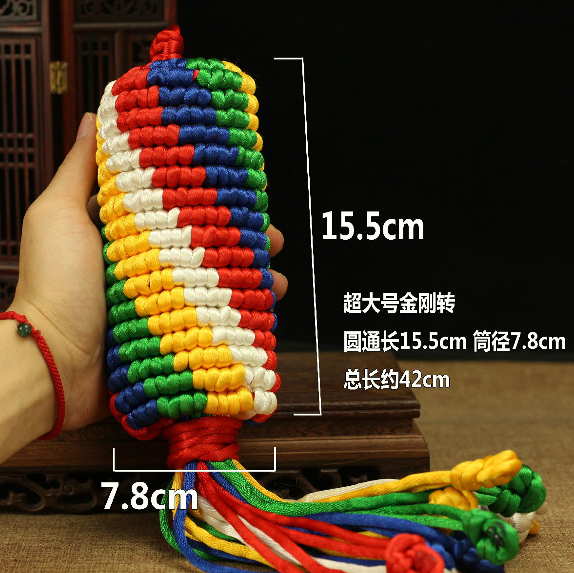 | 本公司大部分商品6一10天到貨。不接急單。急單的客戶請不要下單。感謝諒解與合作! 廠家直銷 歡迎批發 金剛結是一種護身符。在有一些惡的非人意圖傷害我們時,金剛結會起到保護我們的作用,使他們遠離我們。 佩帶金剛結之功德利益:寂猛化身尊眾做授記,一切空行愛護如親子, 一切護法遣除諸違緣,愿成心中一切所希欲。 如來教法興盛且增上,持教大德一切心愿成, 無余遣除有情諸逆緣,愿令一切圓如意成。 金剛結之加持力的期限:金剛結的加持力是無有限期的,除非佩帶此金剛結之人,對此金剛結失去信心或者是被火所焚,加持力才會消失。 【使用方法】 1. 置于胸前或身上;隨身行李、皮包、背包。 2. 所乘之汽車、機車;居家門楣上;病患身上及其周圍。 3. 置于不吉、恐怖之處;運氣不佳之人身上。 對比:同品質 我們的轉經筒更飽 對比:我們編制更精細 緊致金剛結是一種護身符。在有一些惡的非人意圖傷害我們時,金剛結會起到保護我們的作用,使他們遠離我們。 佩帶金剛結之功德利益:寂猛化身尊眾做授記,一切空行愛護如親子, 一切護法遣除諸違緣,愿成心中一切所希欲。 如來教法興盛且增上,持教大德一切心愿成, 無余遣除有情諸逆緣,愿令一切圓如意成。 金剛結之加持力的期限:金剛結的加持力是無有限期的,除非佩帶此金剛結之人,對此金剛結失去信心或者是被火所焚,加持力才會消失。 名稱:金剛結 金剛轉1號 數量:一個 規格:總長約42cm,結長15.5cm,結直徑約7.8cm 小店同系列各大小型號規格如下: 特大號2號:總長34cm,結長12cm,結直徑約4.9cm 大號3號:總長33cm,結長10cm,結直徑約4cm 中號4號:總長33cm,結長9.8cm,結直徑約2.8cm 小號5號:總長33cm,結長9.5cm,結直徑約2.3cm 描述:手工藝品,每一批產品尺寸都略有誤差。敬請諒解 。量大的可以訂做,顏色可自由搭配。