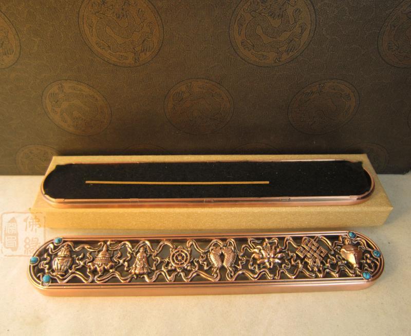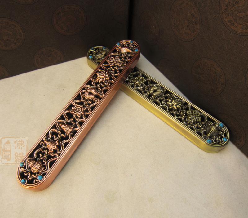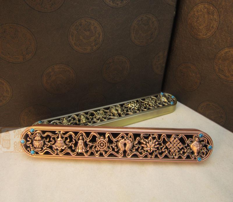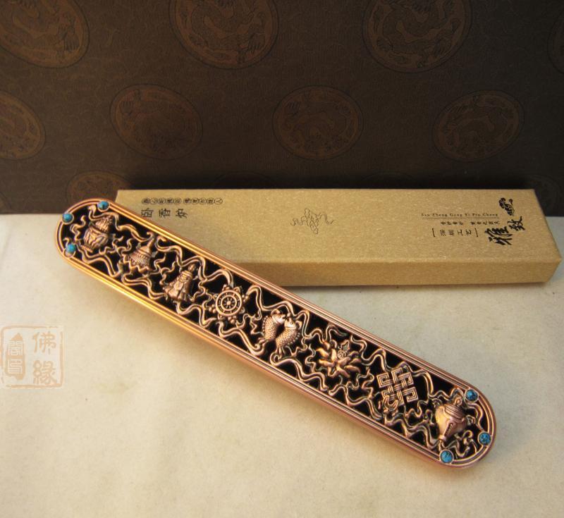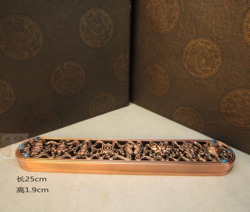 高30mm 青銅色特價 佛教用品 鎏金八吉祥 臥香爐銅 線香爐 熏香爐 送香架