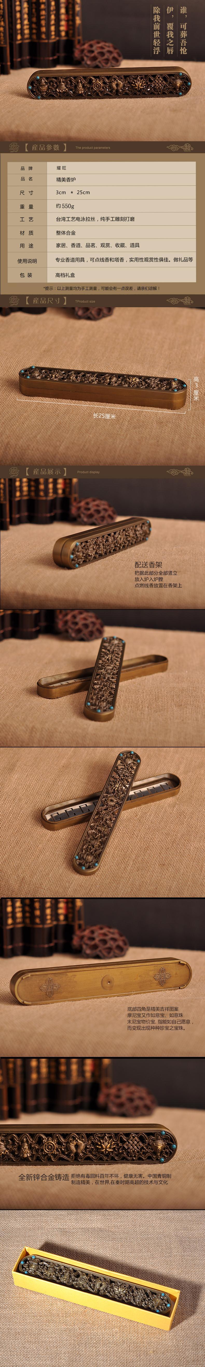 名稱:新款八吉祥臥香爐、線香爐