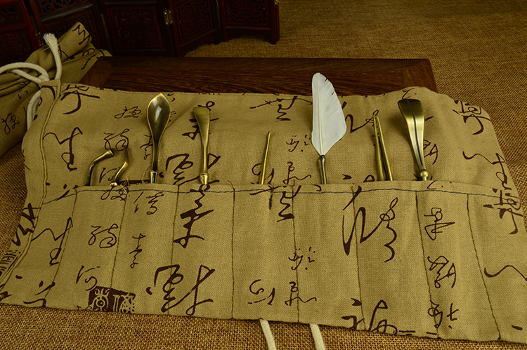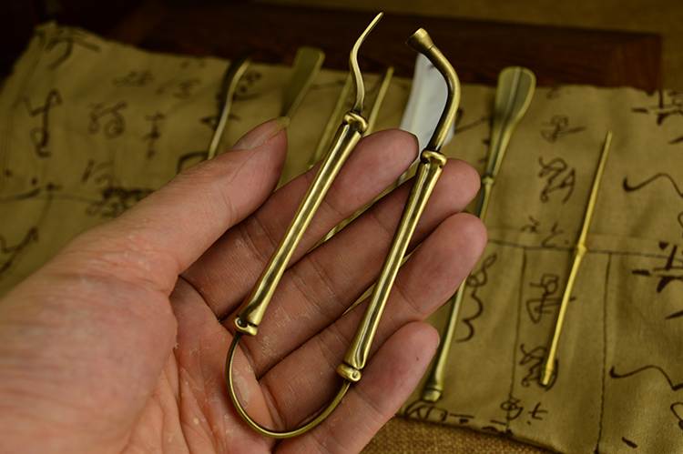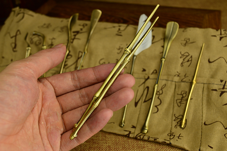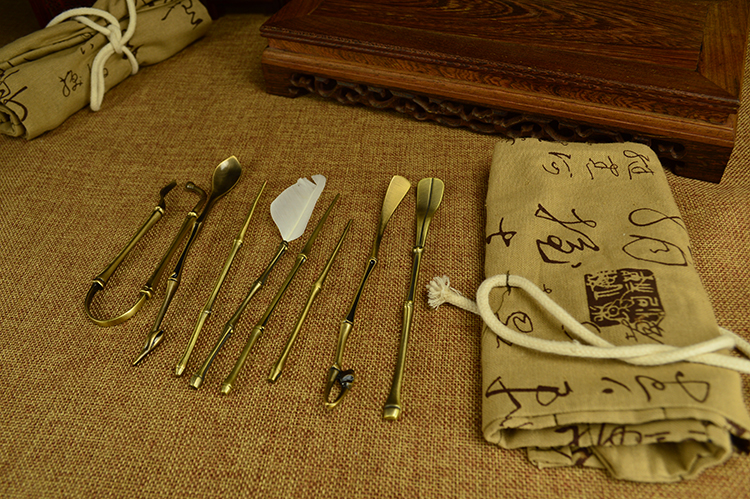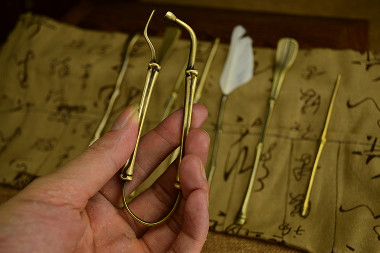 富有詩情畫意的外包裝別有一番風味,這套工具的造型仿制臺北故宮館藏藏品,手柄部分是竹節的造型。稀飯體驗過很多仿制品,看起來雖然差不多,使用起來區別還是很大的。