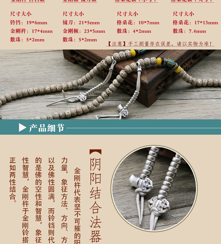 金剛鈴杵款佛珠配飾藏式念經計數器念佛金剛星月菩提配件藏銀金剛鈴杵