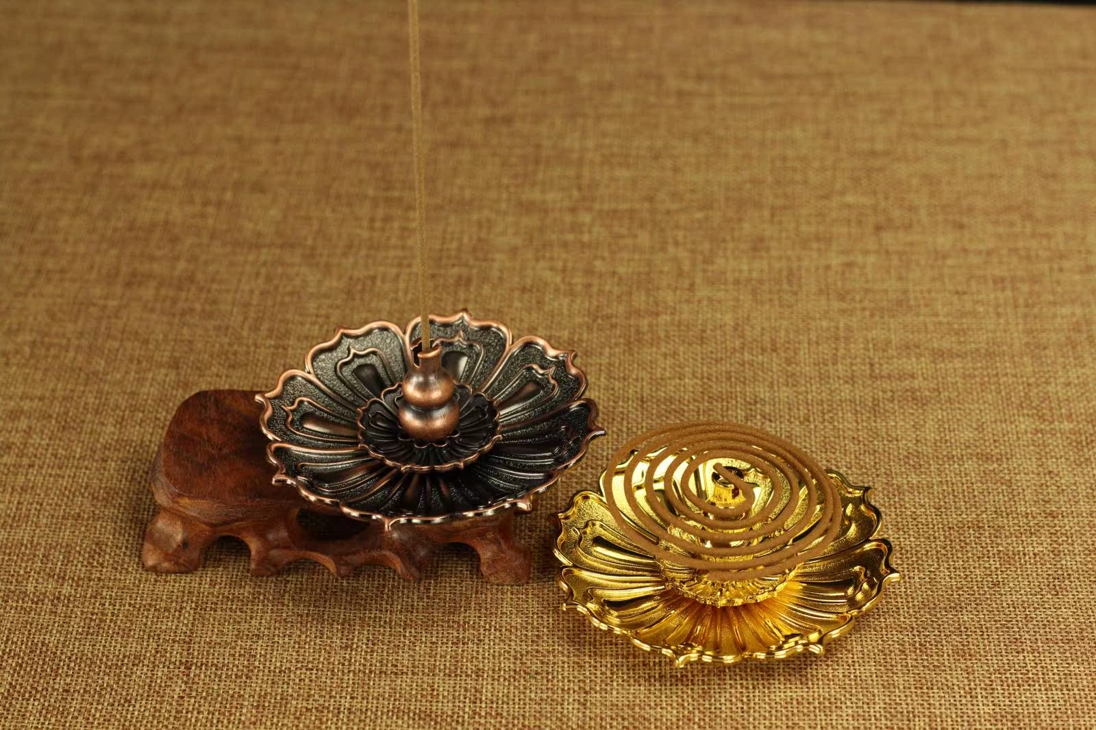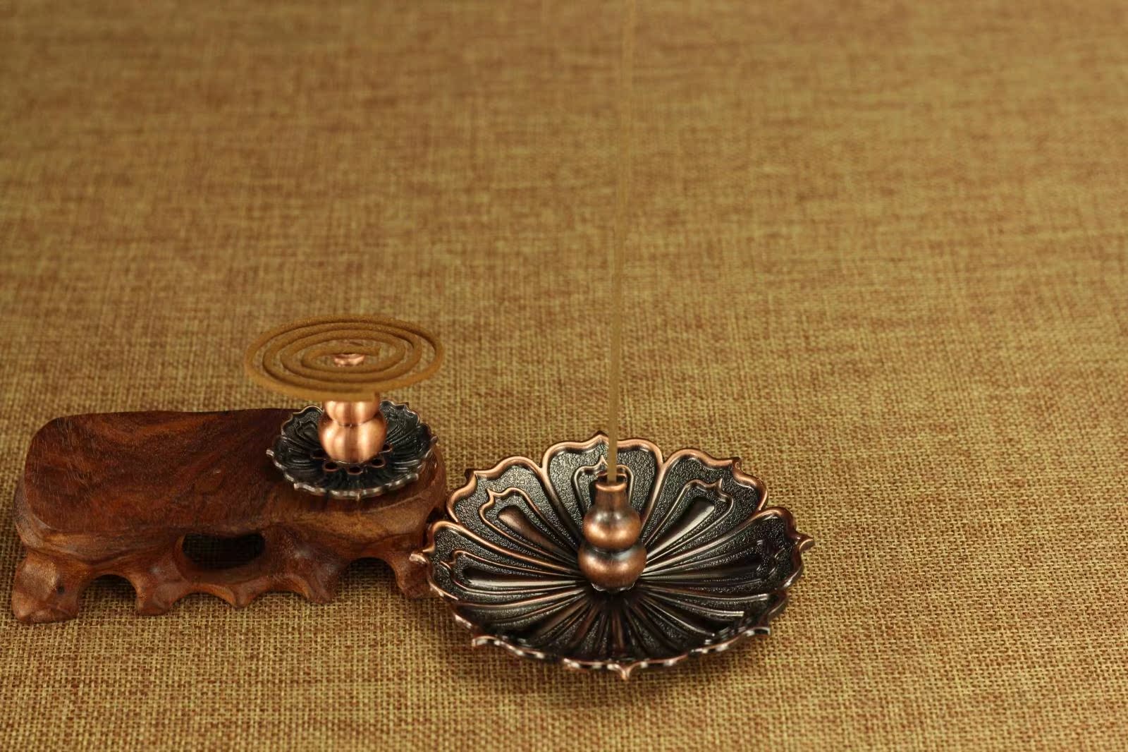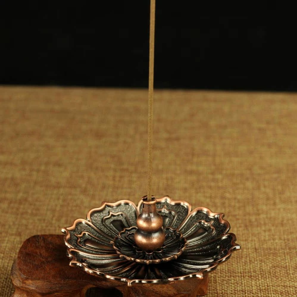 金色銅香爐蓮花香爐香碟銅香爐香插 香盤 小香爐多孔香插線香盤香爐