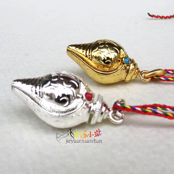 金色精美合金制作海螺嘎烏盒吊墜 法器飾品掛件可裝甘露丸經文